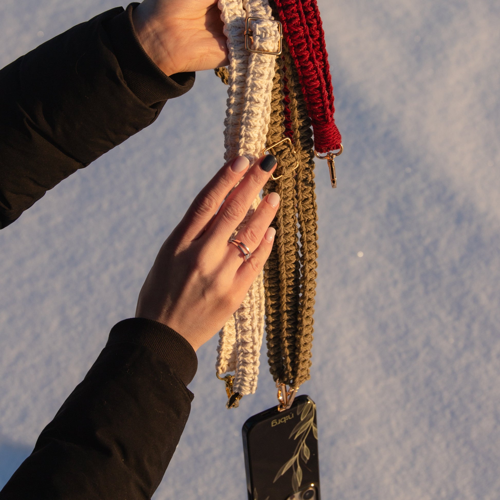 Mūsu telefona siksniņas izgatavotas, lai pielāgotos Tev - Tavai formai, Taviem dienas uzdevumiem. Vari to regulēt dažādos garumos un izmantot dažādi - pāri plecam vai kaklā iekarinātu.